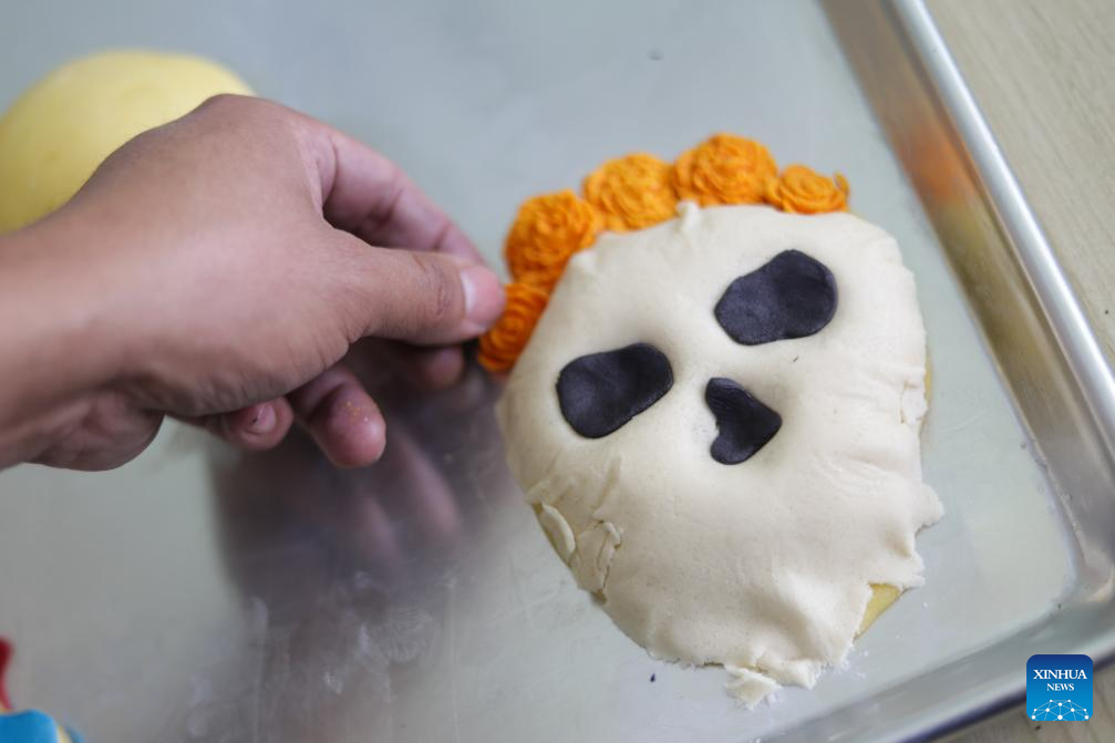CIUDAD DE MEXICO, 29 octubre, 2025 (Xinhua) -- Imagen del 27 de octubre de 2025 del repostero mexicano, Jonathan Barrera, horneando "conchas", un pan dulce tradicional mexicano con una cobertura azucarada, que elaboró utilizando una base de "pan de muerto" con motivo del próximo Día de Muertos, en su taller, en la Ciudad de México, capital de México. Desde su taller, el repostero reinterpreta el "pan de muerto" con diseños inspirados en el Mictlán, inframundo al que llegan las almas después de morir, según la tradición mexica. El Día de Muertos se celebra el 1 y 2 de noviembre en México. (Xinhua/Francisco Cañedo)