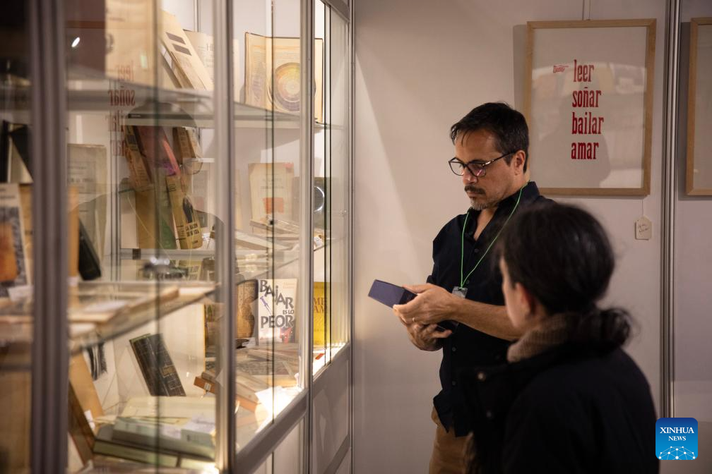 BUENOS AIRES, 30 octubre, 2025 (Xinhua) -- Imagen del 29 de octubre de 2025 de personas observando los libros exhibidos en un estand durante la 18 Feria del Libro Antiguo de Buenos Aires, en el Palacio Libertad, en la ciudad de Buenos Aires, capital de Argentina. (Xinhua/Martín Zabala)