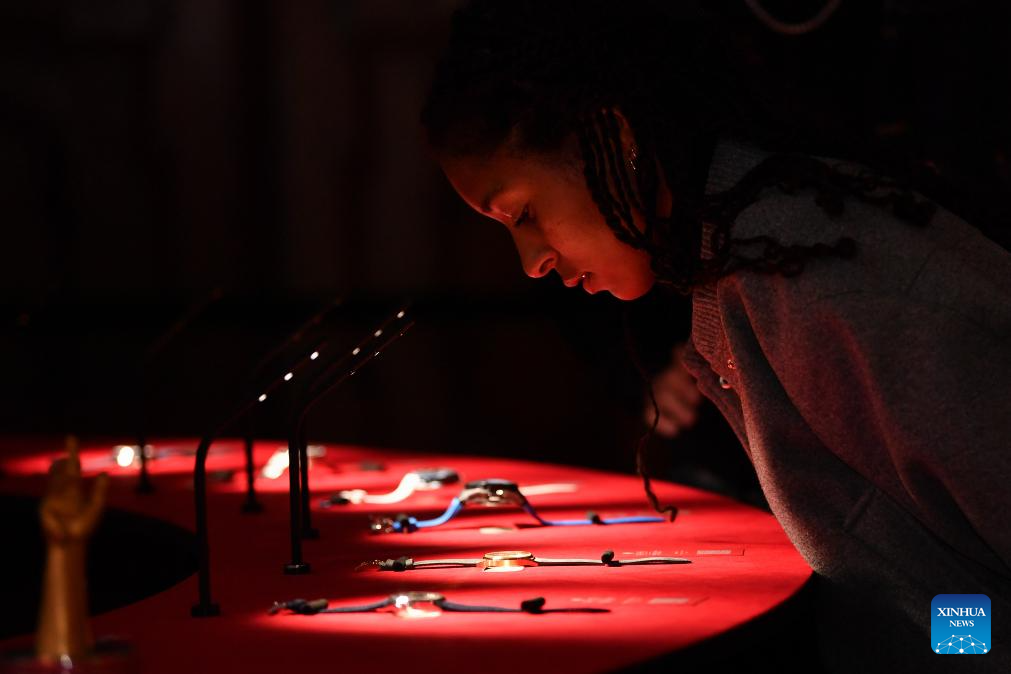 GINEBRA, 14 noviembre, 2025 (Xinhua) -- Imagen del 13 de noviembre de 2025 de una mujer observando un reloj en la exposición del 25 Gran Premio de Relojería de Ginebra (GPHG, por sus siglas en francés), en Ginebra, Suiza. La marca china independiente de relojes Fam al Hut ganó el jueves el Premio Audacity en el 25 GPHG, considerado por muchos como los "Oscar de la Relojería". Esta es la segunda vez que una marca china ha obtenido un premio GPHG. En 2021, la empresa china CIGA Design ganó el Premio Challenge Watch por su modelo original, "el Planeta Azul". (Xinhua/Lian Yi)