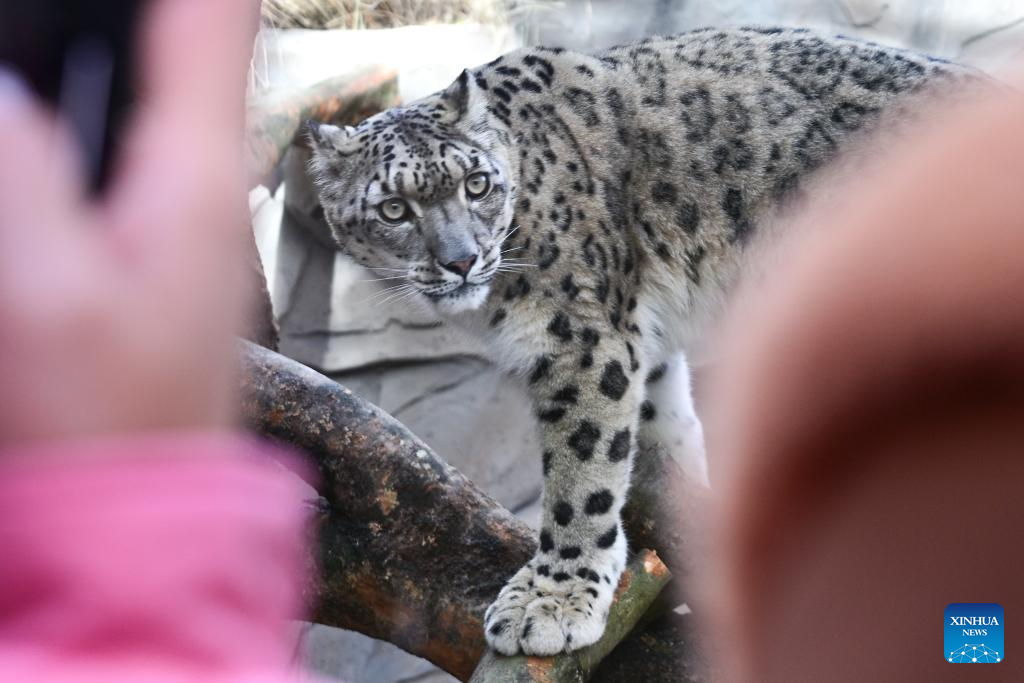 XINING, 15 noviembre, 2025 (Xinhua) -- Visitantes observan un leopardo de las nieves en el Parque de Vida Silvestre de Xining, en la provincia de Qinghai, en el noroeste de China, el 15 de noviembre de 2025. La casa del leopardo del Parque de Vida Silvestre de Xining reabrió al público tras un mes de renovación. (Xinhua/Qi Zhiyue)