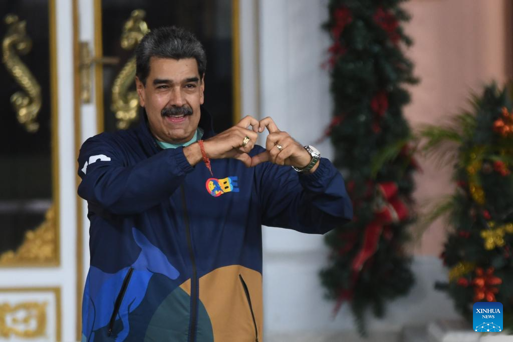 CARACAS, 21 noviembre, 2025 (Xinhua) -- El presidente venezolano, Nicolás Maduro, gesticula durante un acto por el Día del Estudiante Venezolano, en Caracas, Venezuela, el 21 de noviembre de 2025. Los estudiantes venezolanos se movilizaron el viernes en Caracas para celebrar su día y en defensa de la paz y la educación. (Xinhua/Marcos Salgado)