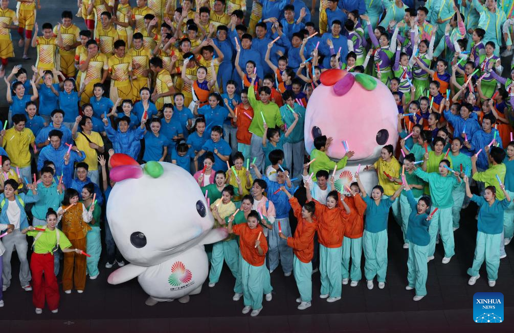 SHENZHEN, 21 noviembre, 2025 (Xinhua) -- Artistas realizan una presentación durante la ceremonia de clausura de los XV Juegos Nacionales de China, en Shenzhen, en la provincia de Guangdong, en el sur de China, el 21 de noviembre de 2025. (Xinhua/Xue Yuge)