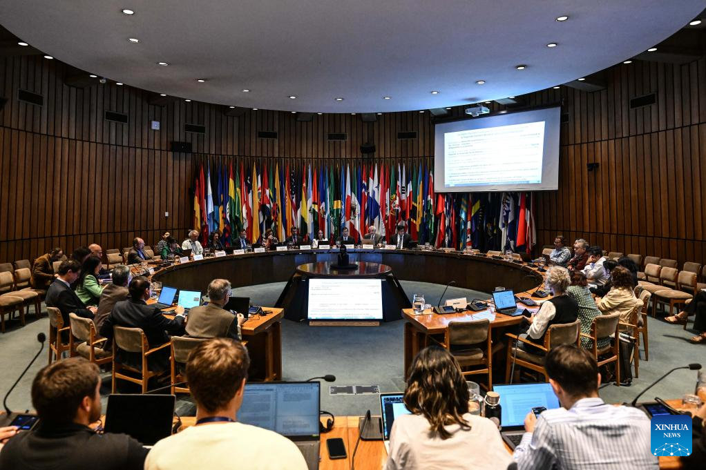 El secretario ejecutivo de la Comisión Económica para América Latina y el Caribe (CEPAL), José Manuel Salazar-Xirinachs, habla durante la emisión del estudio anual "Panorama Social de América Latina y el Caribe 2025: Cómo salir de la trampa de alta desigualdad, baja movilidad social y débil cohesión social", en la sede de la CEPAL, en la ciudad de Santiago, capital de Chile, el 26 de noviembre de 2025. El 25,5 por ciento de la población en América Latina y el Caribe, unos 162 millones de personas, estuvo en situación de pobreza por ingreso en 2024, el valor más bajo desde que existe registro, aunque la concentración del ingreso sigue siendo extrema en la región, detalló un informe de la CEPAL. (Xinhua/Jorge Villegas)