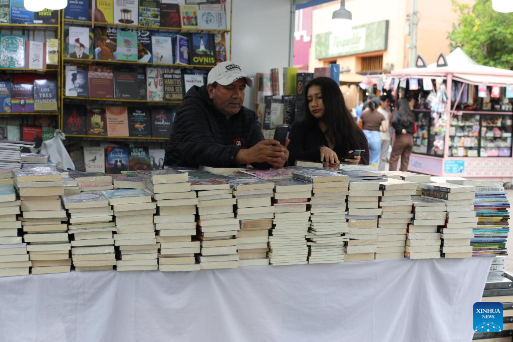 LIMA, 5 diciembre, 2025 (Xinhua) -- Personas visitan la Feria del Libro Ricardo Palma, en el distrito de Miraflores, en Lima, Perú, el 5 de diciembre de 2025. La tradicional Feria del Libro Ricardo Palma, la más antigua de la ciudad de Lima, la capital peruana, se desarrollará hasta el próximo 9 de diciembre en el distrito de Miraflores, donde ofrece a sus miles de visitantes una variada programación literaria y cultural que refuerza la importancia del hábito de la lectura. (Xinhua/Mariana Bazo)