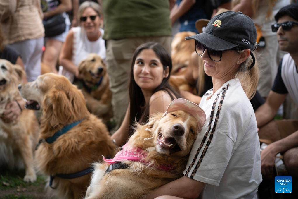 BUENOS AIRES, 8 dic (Xinhua) -- Una ola dorada compuesta por unos 2.000 perros de la raza "golden retriever" llenó hoy lunes de color y diversión la zona norte de la capital argentina, Buenos Aires, tras una convocatoria realizada por redes sociales para reunir ejemplares de la raza canina que se caracteriza por ser juguetona y extrovertida.