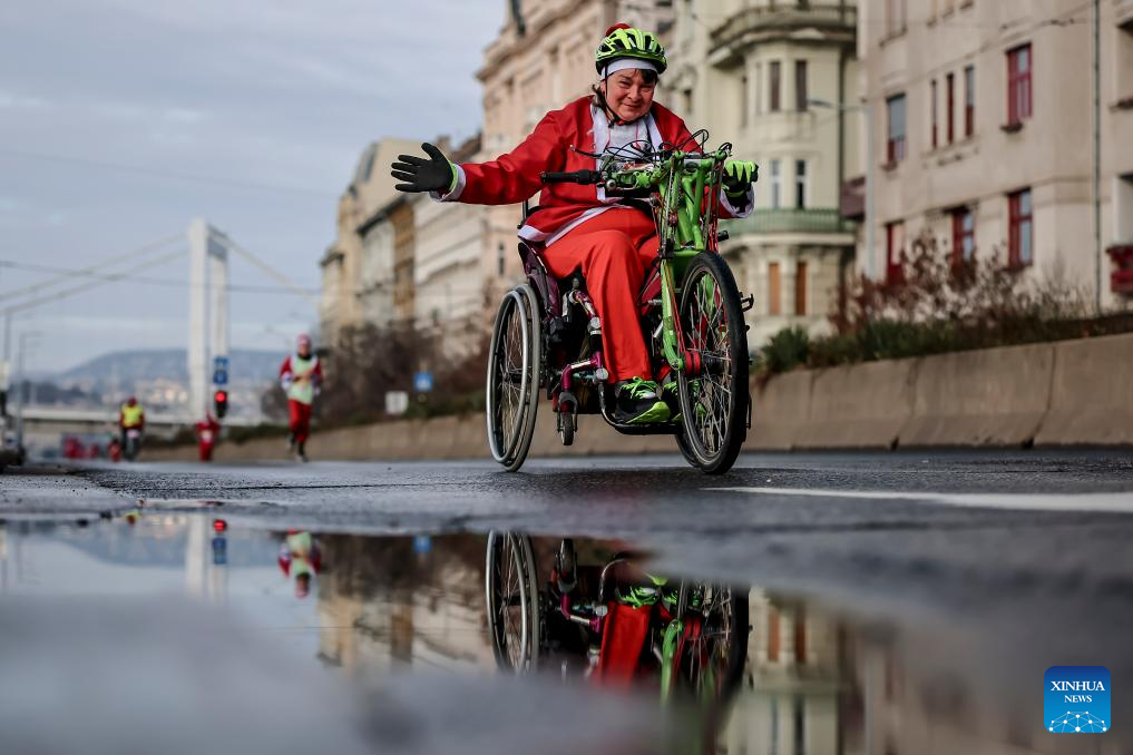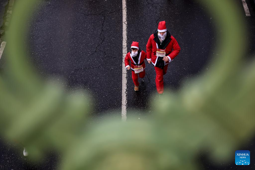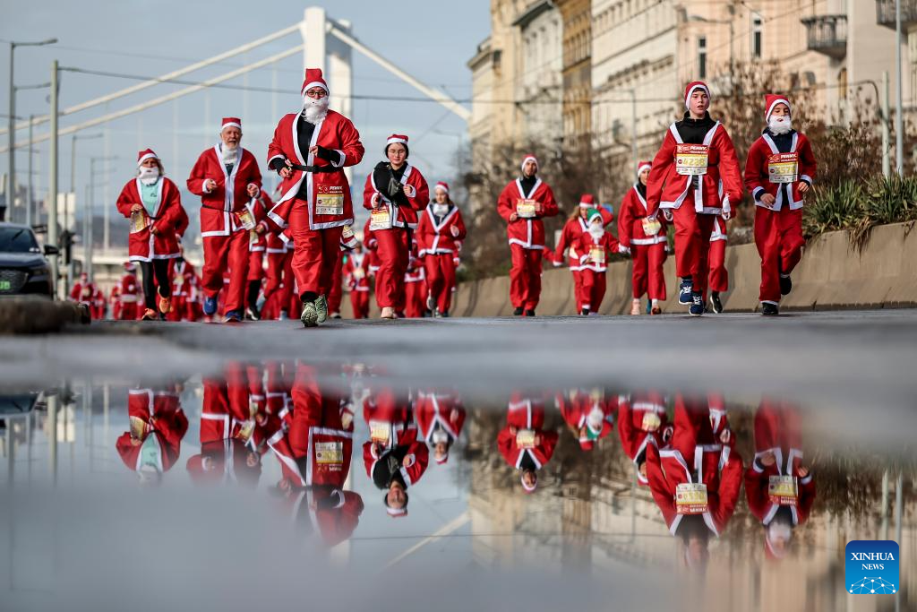 BUDAPEST, 8 diciembre, 2025 (Xinhua) -- Imagen del 7 de diciembre de 2025 de personas disfrazadas de Santa Claus participando en la Carrera anual de Santa, en Budapest, Hungría. El evento se celebró aquí el domingo, reuniendo a unos 4.500 participantes disfrazados de Santa Claus y convirtió el centro de la ciudad en un mar de alegría. (Xinhua/David Balogh)