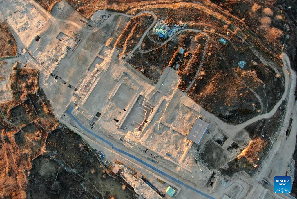 YULIN, 9 diciembre, 2025 (Xinhua) -- Vista aérea tomada con un dron el 29 de noviembre de 2023 de las ruinas de Shimao, en Yulin, en la provincia de Shaanxi, en el noroeste de China. Con una historia de más de 4.000 años, Yulin alberga numerosos sitios históricos y culturales, como las ruinas de Shimao y la torre de vigilancia "Zhenbeitai". (Xinhua/Li Yibo)