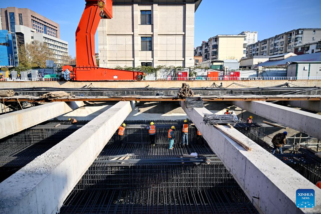 SHIJIAZHUANG, 9 diciembre, 2025 (Xinhua) -- Trabajadores atan barras de acero en un sitio de construcción de la línea 5 del metro de Shijiazhuang, en Shijiazhuang, en la provincia de Hebei, en el norte de China, el 9 de diciembre de 2025. La construcción de la línea 5 del metro de Shijiazhuang avanza de forma constante con varios tramos perforados en dos direcciones. (Xinhua/Mu Yu)