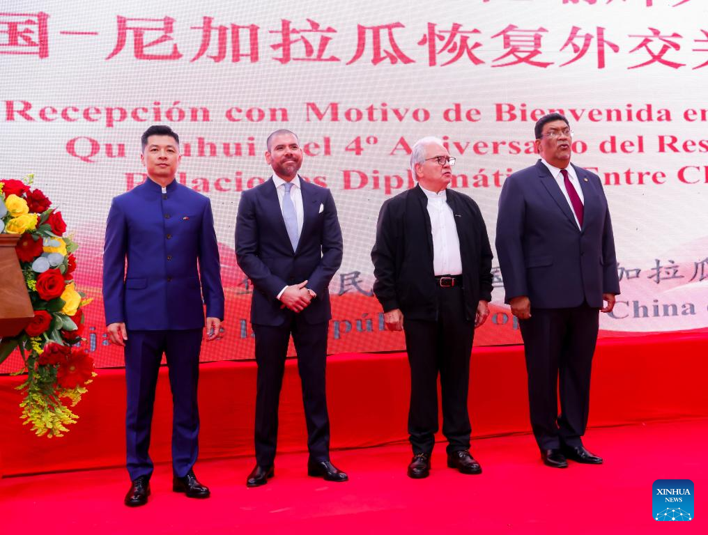 MANAGUA, 11 dic (Xinhua) -- Se celebró en Managua la noche del miércoles una recepción en ocasión del cuarto aniversario del restablecimiento de las relaciones diplomáticas entre China y Nicaragua, asimismo se dio la bienvenida al embajador Qu Yuhui.