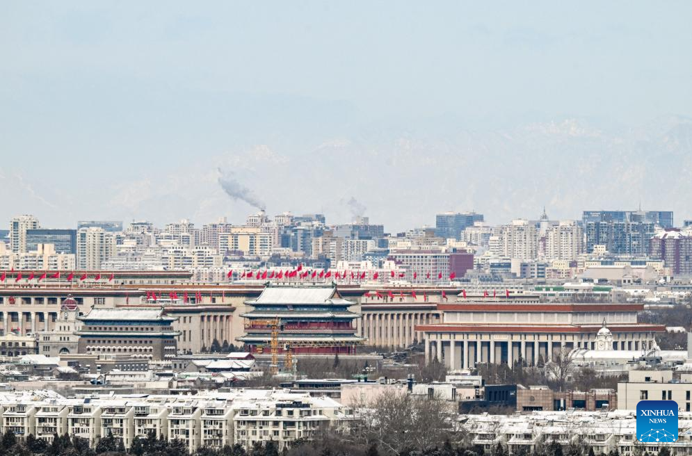 BEIJING, 13 diciembre, 2025 (Xinhua) -- Imagen del 13 de diciembre de 2025 de un paisaje nevado, en la parte central de Beijing, capital de China. Beijing atestiguó el viernes su primera nevada significativa de esta temporada invernal. (Xinhua/Chen Yehua)