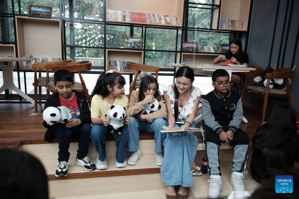 CIUDAD DE PANAMA, 13 diciembre, 2025 (Xinhua) -- Imagen del 12 de diciembre de 2025 de una trabajadora (2-d) narrando historias de libros ilustrados chinos a niños durante una tarde cultural china organizada por el Instituto Confucio de la Universidad de Panamá, en la Ciudad de Panamá, capital de Panamá. Una rica tarde cultural de expresiones artísticas chinas fue brindada el viernes por profesoras del Instituto Confucio de la Universidad de Panamá a niños y adultos en el Salón Chino del Parlamento Latinoamericano y Caribeño, en la capital panameña. (Xinhua/Xu Yongzheng)
