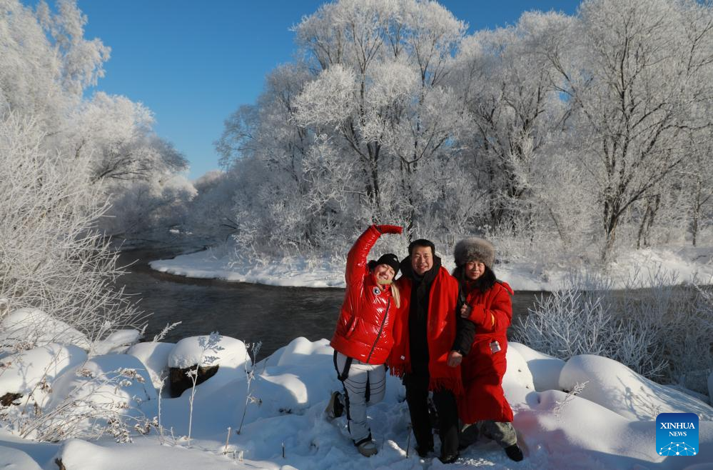 XUNKE, 26 diciembre, 2025 (Xinhua) -- Turistas visitan un punto escénico con temática de escarcha, en el distrito de Xunke, en la provincia de Heilongjiang, en el noreste de China, el 26 de diciembre de 2025. (Xinhua/Wang Dong)