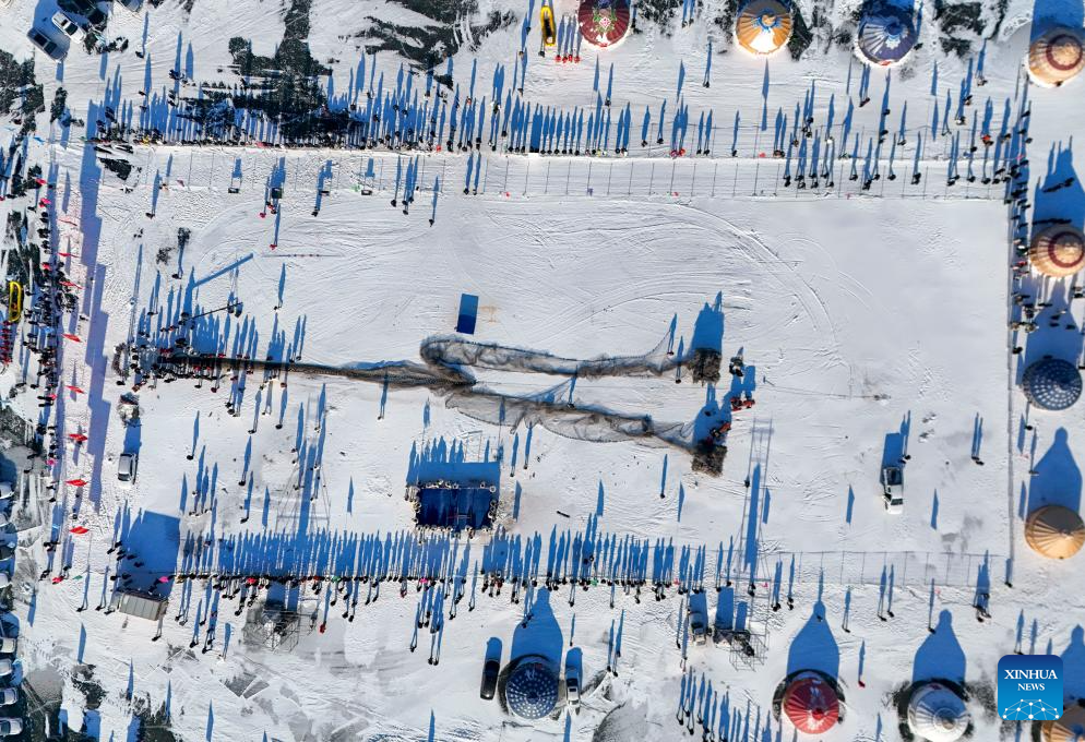 DAQING, 27 diciembre, 2025 (Xinhua) -- Vista aérea tomada con un dron el 27 de diciembre de 2025 de un evento de pesca de invierno de una feria de Nadam sobre el congelado lago Lianhuan, en el distrito autónomo mongol de Dorbod, en la ciudad de Daqing, en la provincia de Heilongjiang, en el noreste de China. Una feria de Nadam de hielo y nieve con pesca de invierno comenzó aquí el sábado. El desarrollo integrado de la industria pesquera, cultural y turística en Dorbod no solo ha impulsado el mercado turístico, sino que también ha incrementado los ingresos de los pescadores locales. (Xinhua/Wang Song)