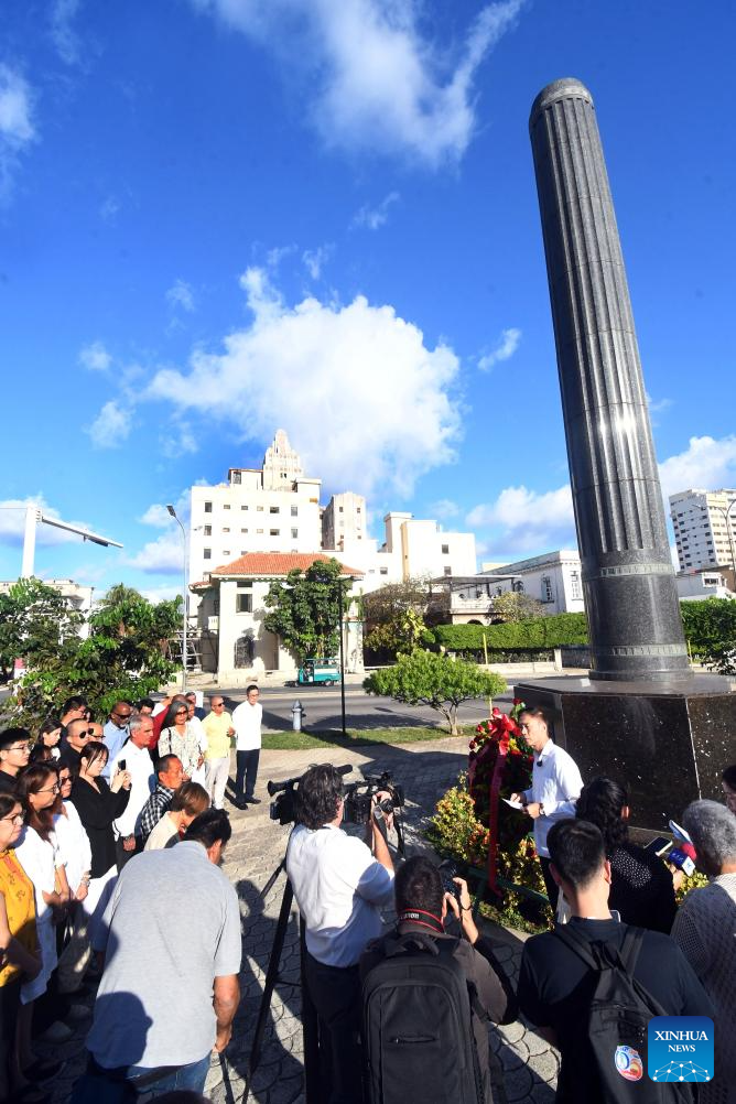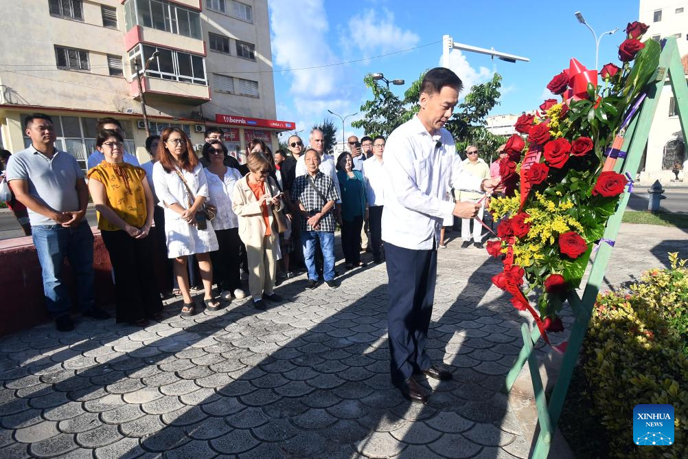 LA HABANA, 30 dic (Xinhua) -- En un acto de simbolismo histórico, el embajador de China en Cuba, Hua Xin, depositó hoy martes una ofrenda floral ante el Monumento al Soldado Chino en La Habana y destacó la contribución de la comunidad china al desarrollo del país caribeño y América Latina.