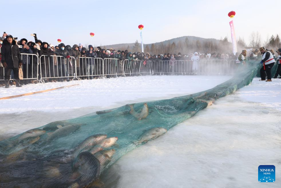 MOHE, 30 diciembre, 2025 (Xinhua) -- Turistas asisten a un evento de pesca invernal, en Mohe, en la provincia de Heilongjiang, en el noreste de China, el 30 de diciembre de 2025. El evento celebrado el martes mostró algunas costumbres y artes folclóricas que solo se encuentran en Mohe. (Xinhua/Shao Tianli)