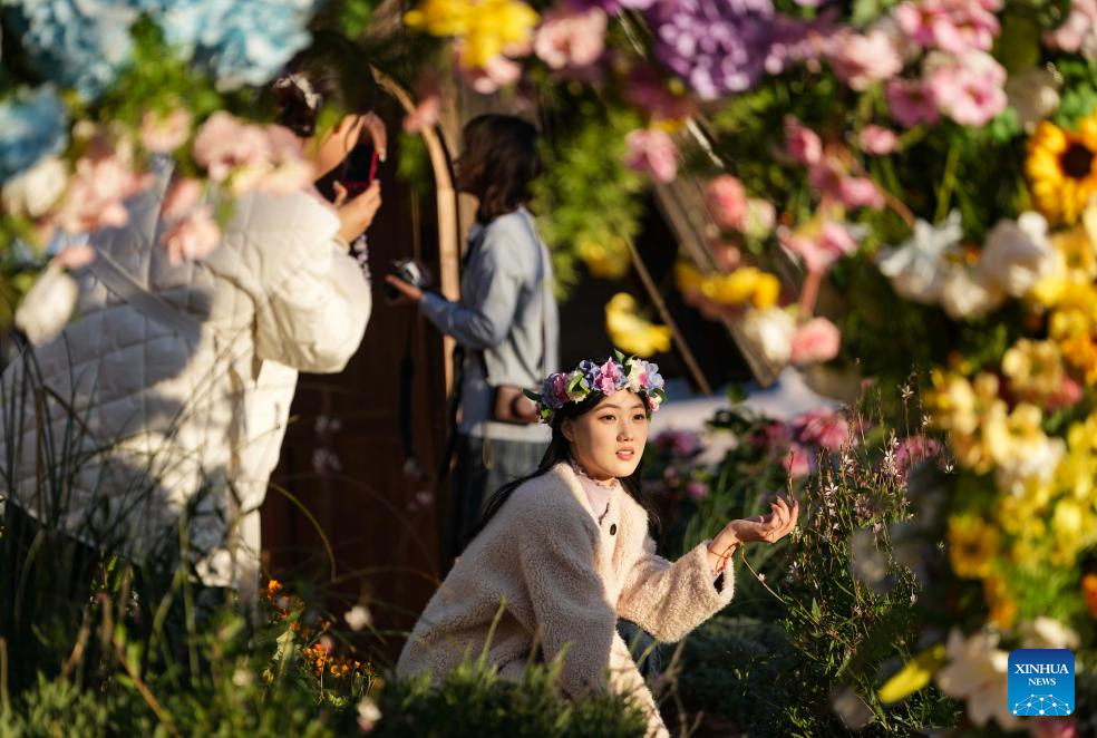 KUNMING, 31 diciembre, 2025 (Xinhua) -- Una turista posa para una fotografía en el Mercado de Flores de Dounan, en Kunming, en la provincia de Yunnan, en el suroeste de China, el 31 de diciembre de 2025. A medida que se acerca el Año Nuevo, el Mercado de Flores de Dounan, en Kunming, conocida como la "capital de las flores de Asia", se va animando gradualmente. (Xinhua/Chen Xinbo)