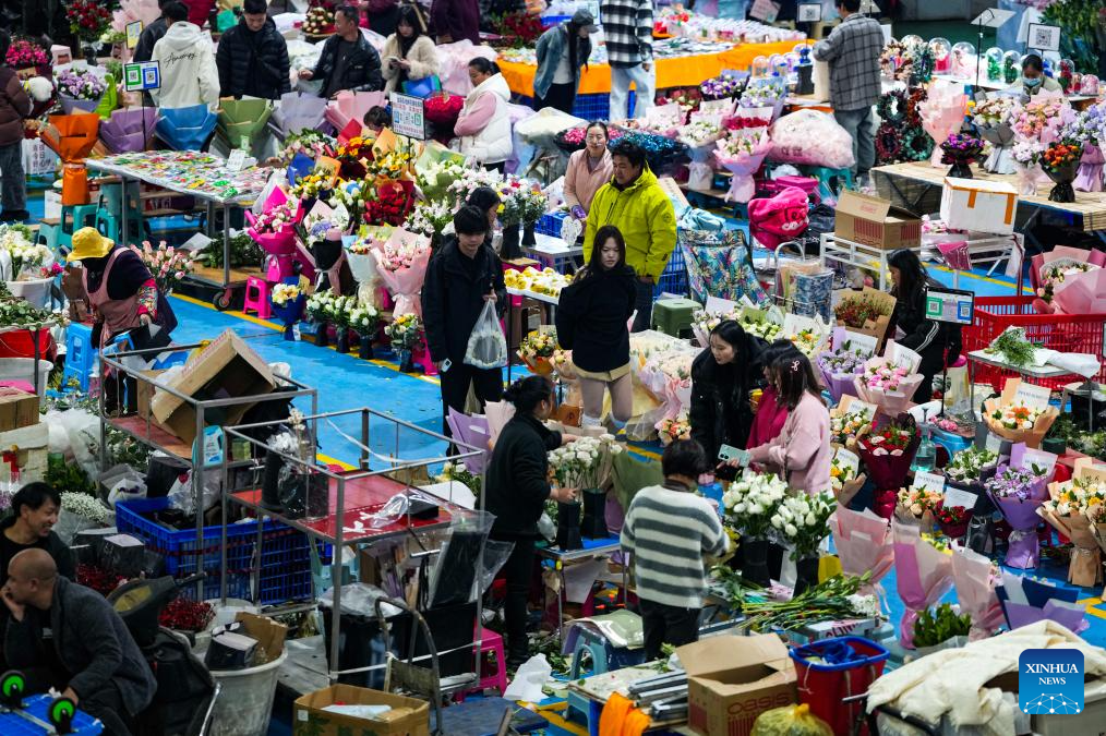 KUNMING, 31 diciembre, 2025 (Xinhua) -- Imagen del Mercado de Flores de Dounan, en Kunming, en la provincia de Yunnan, en el suroeste de China, el 31 de diciembre de 2025. A medida que se acerca el Año Nuevo, el Mercado de Flores de Dounan, en Kunming, conocida como la "capital de las flores de Asia", se va animando gradualmente. (Xinhua/Chen Xinbo)