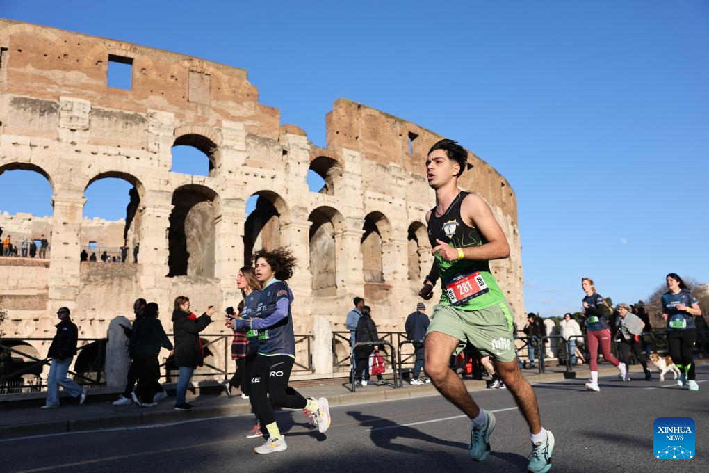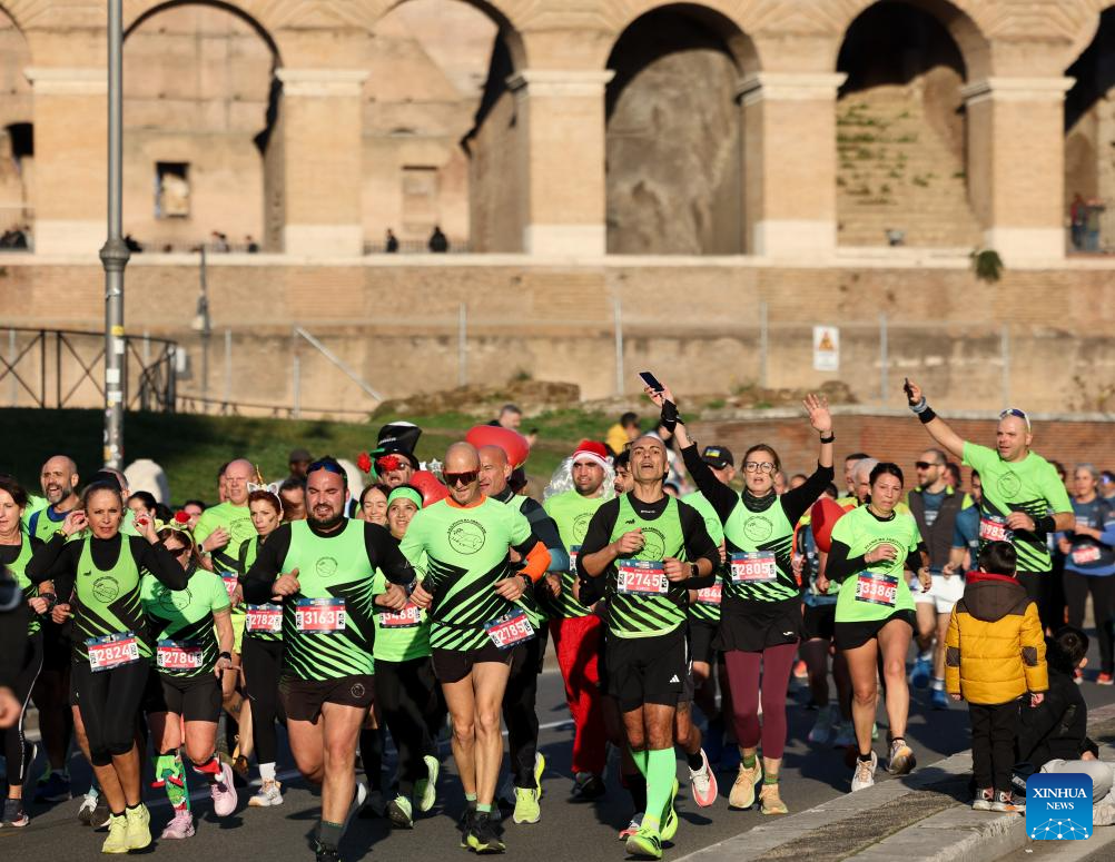 ROMA, 31 diciembre, 2025 (Xinhua) -- Imagen del 31 de diciembre de 2025 de personas corriendo junto al Coliseo durante el evento "We Run Rome" para celebrar el próximo Año Nuevo, en Roma, Italia. (Xinhua/Li Jing)