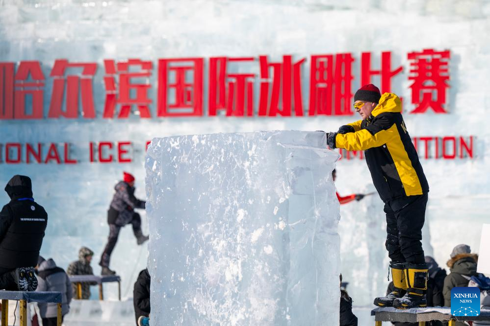 HARBIN, 2 enero, 2026 (Xinhua) -- Competidores trabajan en esculturas de hielo durante el 37 Concurso Internacional de Esculturas de Hielo de Harbin de China en el Mundo de Hielo y Nieve de Harbin, en Harbin, en la provincia de Heilongjiang, en el noreste de China, el 2 de enero de 2026. El concurso comenzó aquí el viernes. (Xinhua/Zhang Tao)
