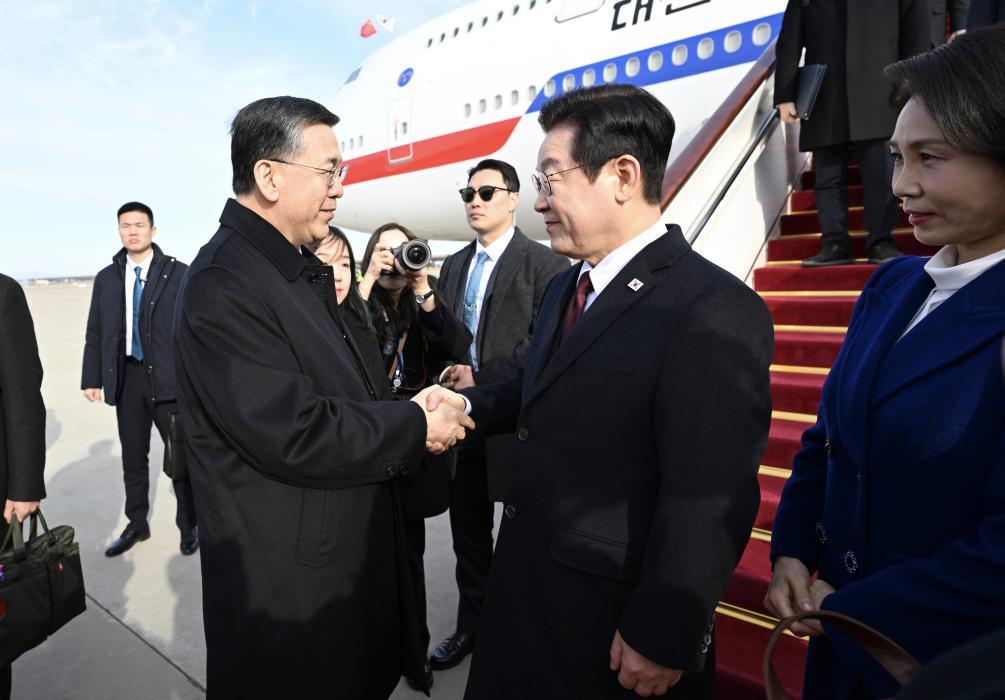 BEIJING, 4 ene (Xinhua) -- Por invitación del presidente chino, Xi Jinping, el presidente de la República de Corea, Lee Jae Myung, arribó a Beijing hoy domingo para realizar una visita de Estado a China del 4 al 7 de enero.