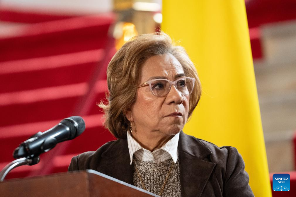 La canciller colombiana, Yolanda Villavicencio, asiste a una conferencia de prensa, en Bogotá, capital de Colombia, el 6 de enero de 2026. El Gobierno colombiano convocó a una reunión con el encargado de Negocios de la Embajada de Estados Unidos en Colombia, John McNamara (embajador encargado), para manifestar el rechazo a las amenazas con incursión militar para detener al presidente Gustavo Petro, anunció el martes Villavicencio. (Xinhua/Andrés Moreno)