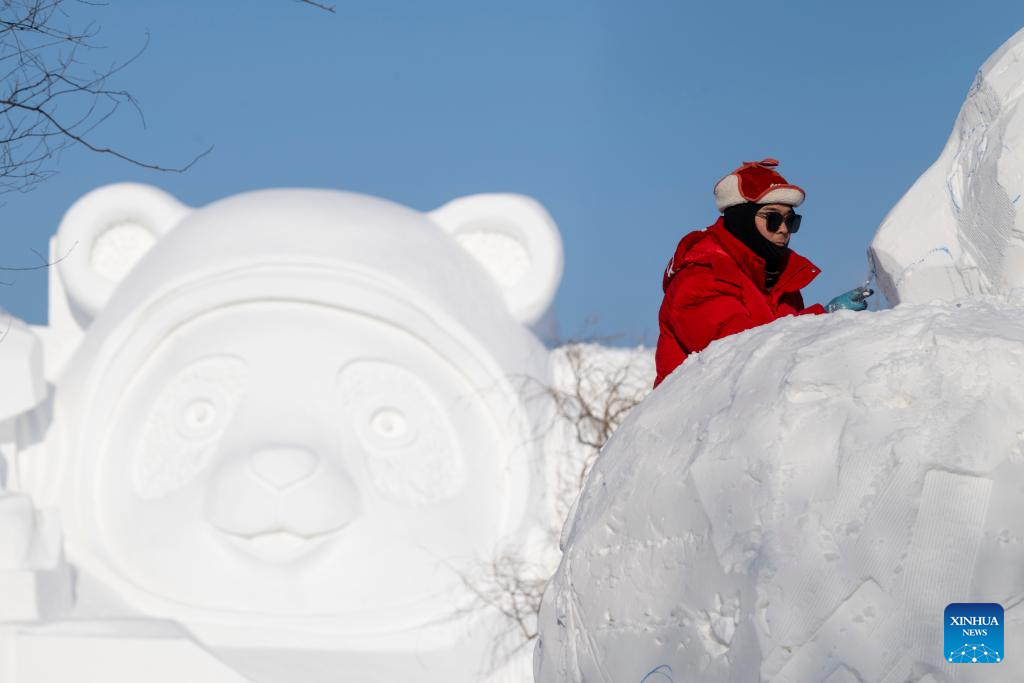 HARBIN, 7 enero, 2026 (Xinhua) -- Un concursante trabaja en una escultura de nieve en el recinto de la Exposición Internacional de Arte de Esculturas de Nieve de la Isla del Sol, en Harbin, en la provincia de Heilongjiang, en el noreste de China, el 7 de enero de 2026. El 28 concurso internacional de esculturas de nieve de Harbin comenzó aquí el martes, atrayendo 25 equipos de escultores de nieve de 13 países. Diversos trabajos de esculturas de nieve comenzaron a tomar forma el miércoles. (Xinhua/Wang Jianwei)