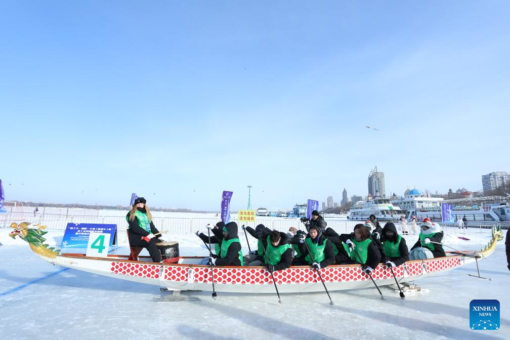 HARBIN, 10 enero, 2026 (Xinhua) -- Estudiantes del Instituto de Tecnología de Harbin (HIT, por sus siglas en inglés) compiten durante la Carrera Internacional de la Amistad de Botes de Dragón sobre Hielo "Copa HIT-Cambridge-Oxford", en Harbin, en la provincia de Heilongjiang, en el noreste de China, el 10 de enero de 2026. La primera Carrera Internacional de la Amistad de Botes de Dragón sobre Hielo "Copa HIT-Cambridge-Oxford" se celebró en la capital provincial Harbin, conocida como la "Ciudad del Hielo" de China, y reunió a 14 equipos, entre los que se encontraban los de Oxford, Cambridge, el HIT y universidades de Hong Kong y Macao. (Xinhua)