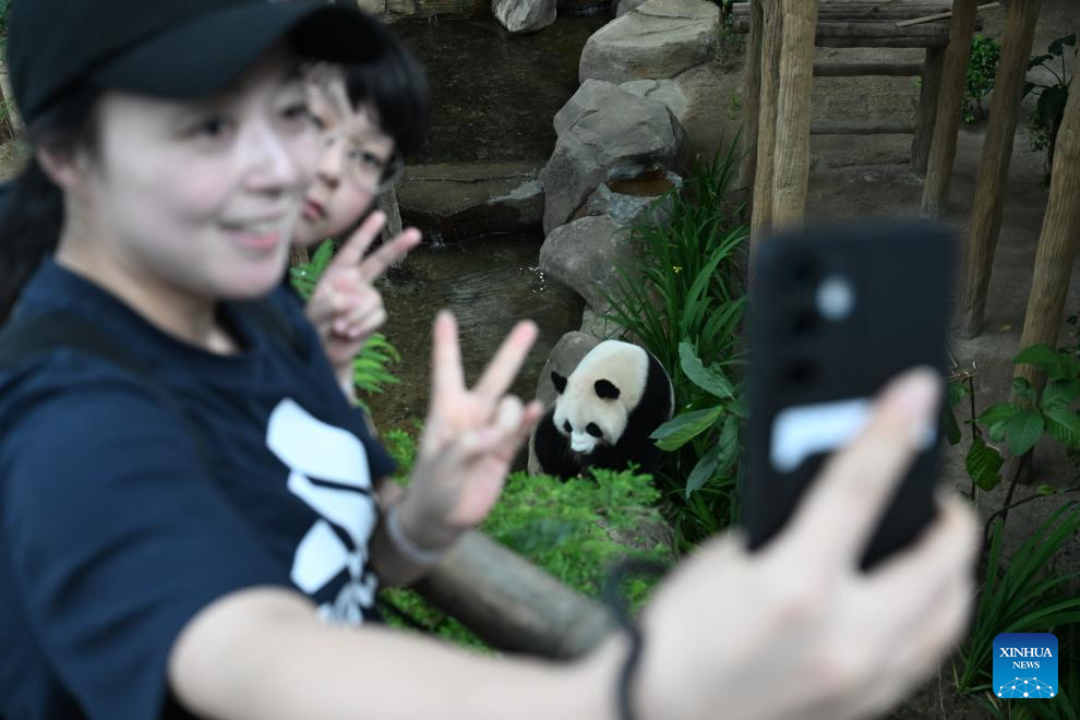 KUALA LUMPUR, 10 enero, 2026 (Xinhua) -- Personas posan para fotografías con la panda gigante "Xiaoyue" en el Zoológico Negara, en Selangor, Malasia, el 10 de enero de 2026. Los pandas gigantes de China "Chenxing" y "Xiaoyue", actualmente prestados a Malasia, se presentaron oficialmente al público aquí el sábado. (Xinhua/Cheng Yiheng)