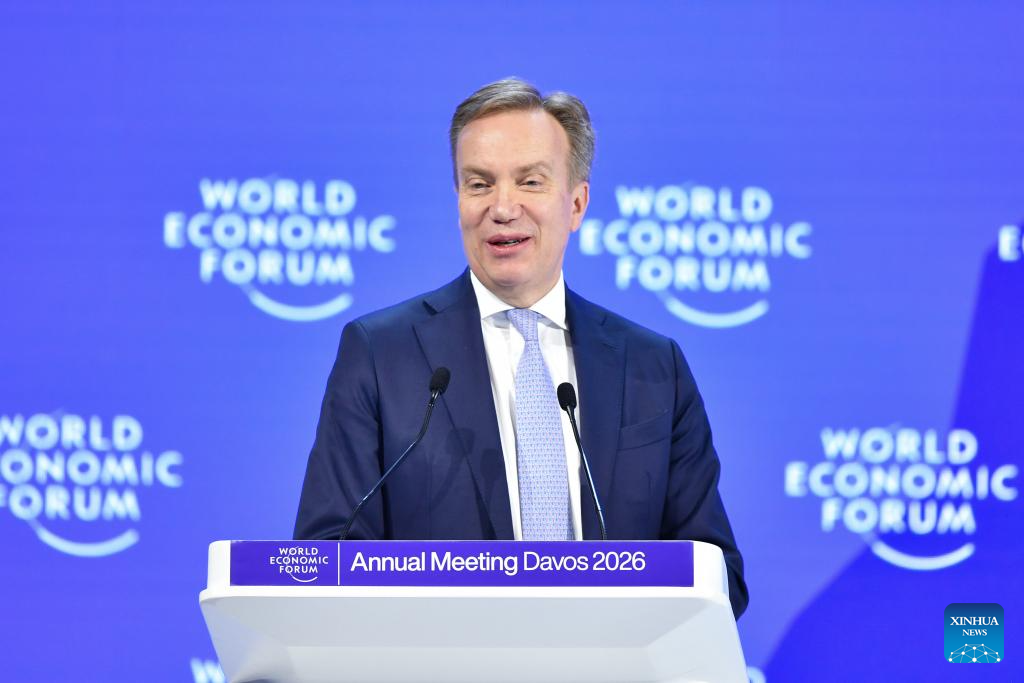 DAVOS, 23 enero, 2026 (Xinhua) -- Borge Brende, presidente del Foro Económico Mundial (FEM), pronuncia un discurso de clausura en la Reunión Anual del FEM 2026, en Davos, Suiza, el 23 de enero de 2026. El FEM concluyó su reunión anual 2026 aquí el viernes. (Xinhua/Lian Yi)