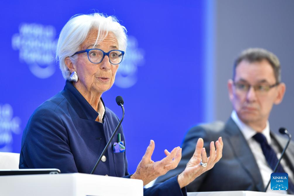DAVOS, 23 enero, 2026 (Xinhua) -- Christine Lagarde, presidenta del Banco Central Europeo, habla durante la Reunión Anual del Foro Económico Mundial (FEM) 2026, en Davos, Suiza, el 23 de enero de 2026. El FEM concluyó su reunión anual 2026 aquí el viernes. (Xinhua/Lian Yi)