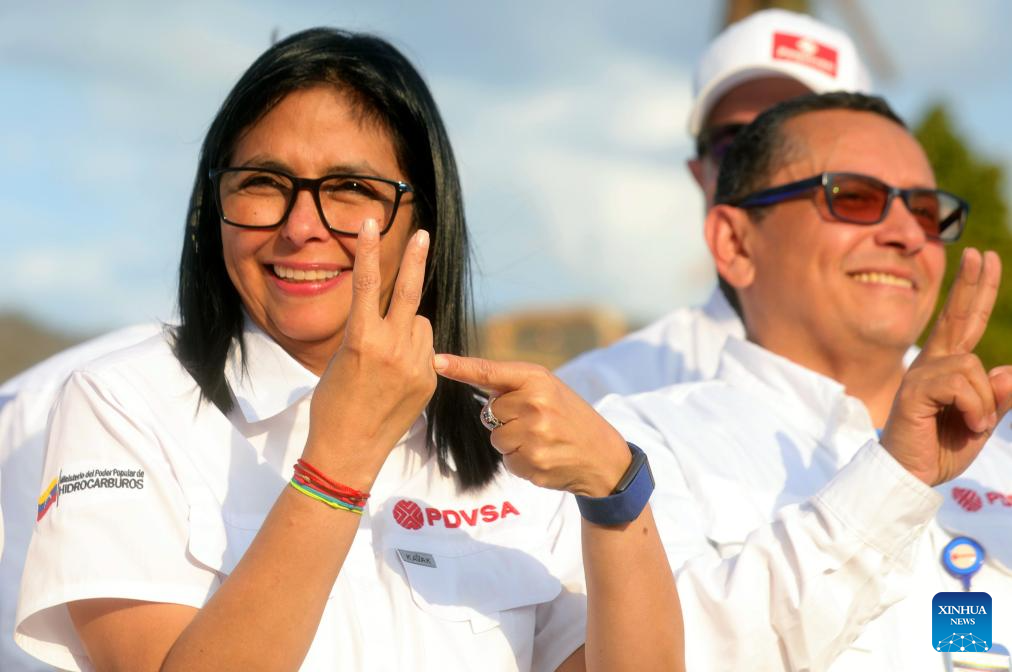 ANZOATEGUI, 25 enero, 2026 (Xinhua) -- Imagen proveída por la Presidencia de Venezuela de la presidenta encargada venezolana, Delcy Rodríguez (d-frente), participando en un acto en Puerto La Cruz, en el estado Anzoátegui, Venezuela, el 25 de enero de 2026. La reforma de la Ley Orgánica de Hidrocarburos que impulsa el Gobierno de Venezuela servirá para la "felicidad económica" del país, afirmó el domingo la presidenta encargada, Delcy Rodríguez. (Xinhua/Presidencia de Venezuela)