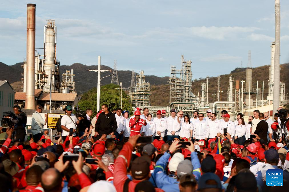 ANZOATEGUI, 25 enero, 2026 (Xinhua) -- Imagen proveída por la Presidencia de Venezuela de trabajadores petroleros participando en un acto, en Puerto La Cruz, en el estado Anzoátegui, Venezuela, el 25 de enero de 2026. La reforma de la Ley Orgánica de Hidrocarburos que impulsa el Gobierno de Venezuela servirá para la "felicidad económica" del país, afirmó el domingo la presidenta encargada, Delcy Rodríguez. (Xinhua/Presidencia de Venezuela)