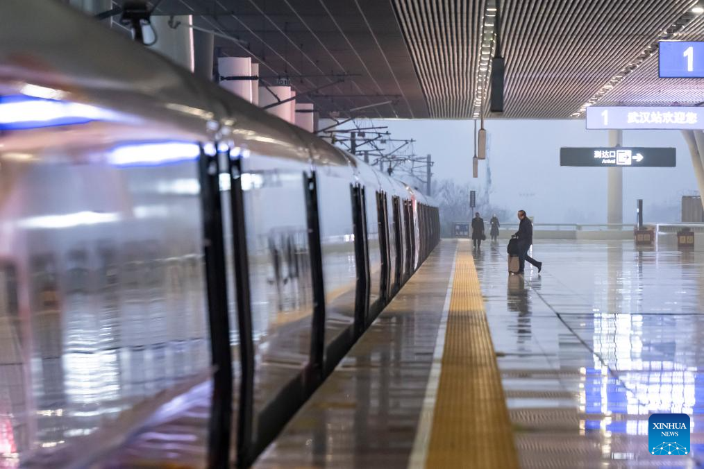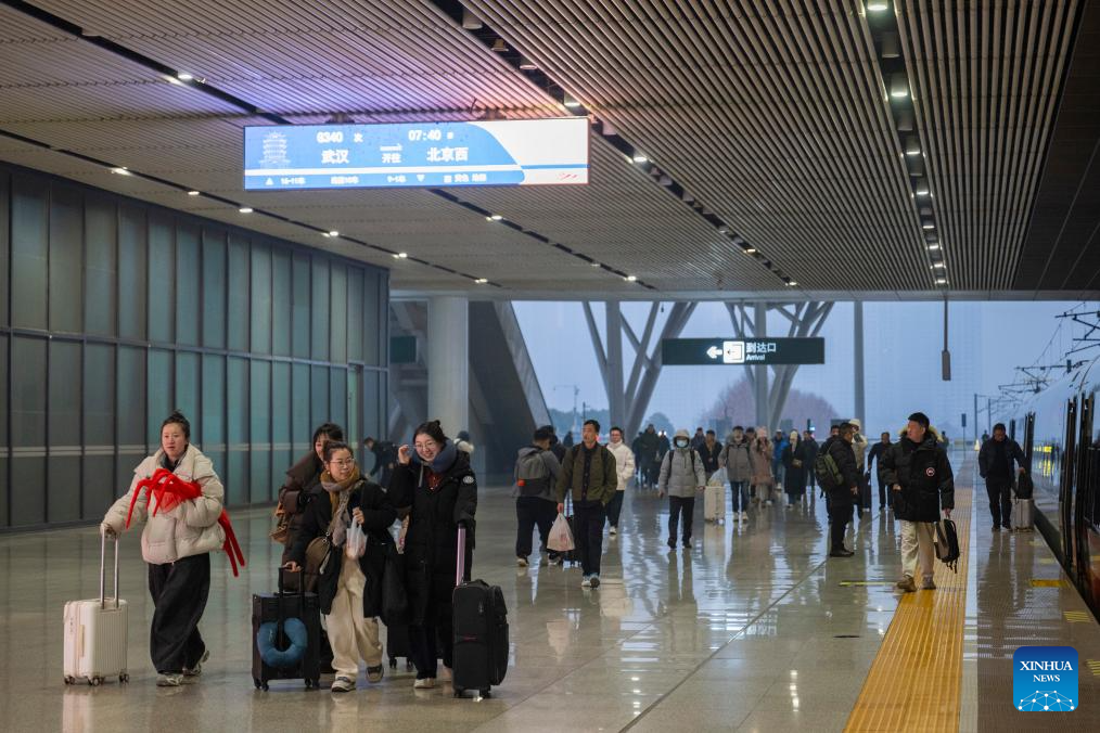 WUHAN, 26 enero, 2026 (Xinhua) -- Pasajeros suben al tren No. G340 en la estación de Ferrocarril de Wuhan, en Wuhan, en la provincia de Hubei, en el centro de China, el 26 de enero de 2026. Un nuevo horario de trenes a nivel nacional entró en vigor en China a partir del 26 de enero de 2026 con una mayor capacidad y eficiencia en el transporte de pasajeros y mercancías. (Xinhua/Wu Zhizun)