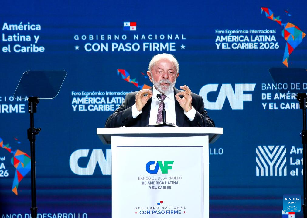 CIUDAD DE PANAMA, 28 enero, 2026 (Xinhua) -- El presidente brasileño, Luiz Inácio Lula da Silva, pronuncia un discurso durante el Foro Económico Internacional América Latina y el Caribe 2026 del Banco de Desarrollo de América Latina y el Caribe (CAF), en la Ciudad de Panamá, capital de Panamá, el 28 de enero de 2026. El Foro Económico Internacional América Latina y el Caribe 2026 del CAF se desarrolla en Panamá y cuenta con la participación de mandatarios y delegaciones de distintos países de América Latina y el Caribe, en un contexto marcado por la búsqueda de nuevas estrategias de cooperación e inserción regional en la economía global. (Xinhua/Daniel González)