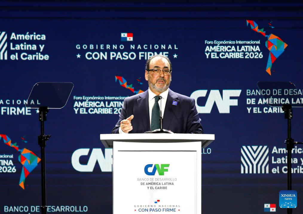 CIUDAD DE PANAMA, 28 enero, 2026 (Xinhua) -- El presidente ejecutivo del Banco de Desarrollo de América Latina y el Caribe (CAF), Sergio Díaz-Granados pronuncia un discurso durante el Foro Económico Internacional América Latina y el Caribe 2026 del CAF, en la Ciudad de Panamá, capital de Panamá, el 28 de enero de 2026. El Foro Económico Internacional América Latina y el Caribe 2026 del CAF se desarrolla en Panamá y cuenta con la participación de mandatarios y delegaciones de distintos países de América Latina y el Caribe, en un contexto marcado por la búsqueda de nuevas estrategias de cooperación e inserción regional en la economía global. (Xinhua/Daniel González)