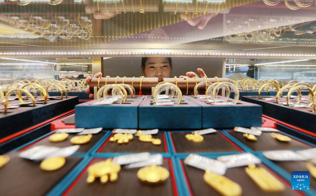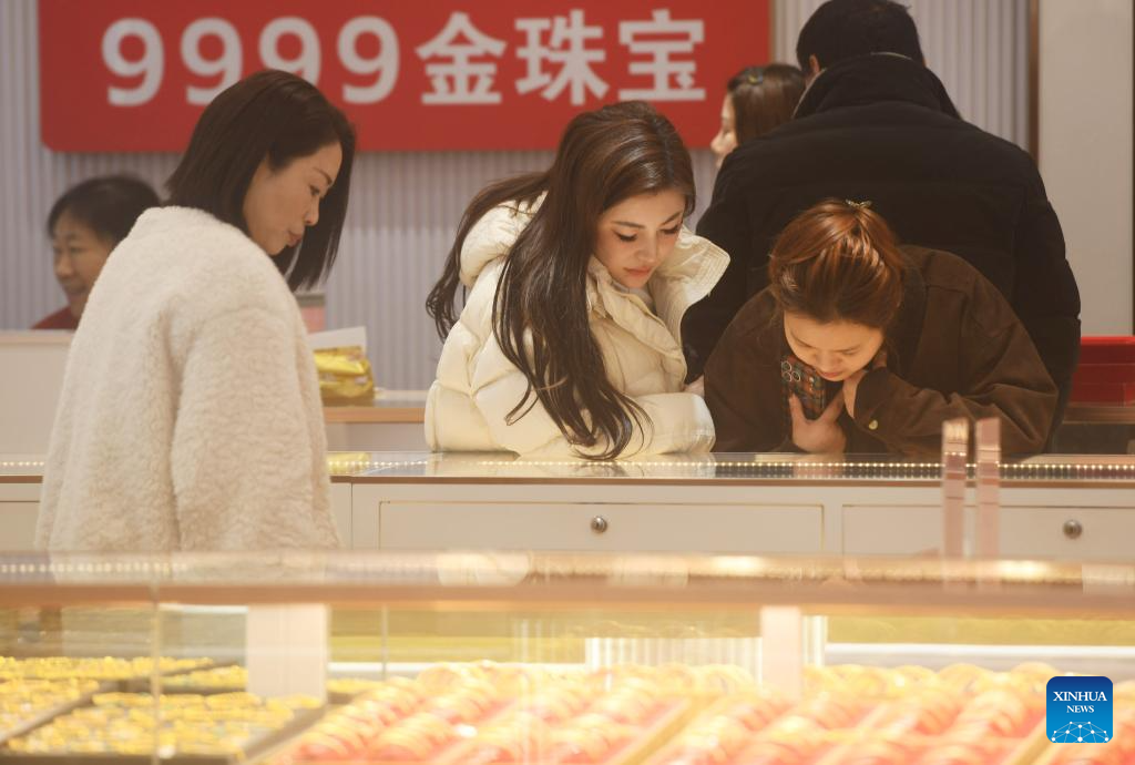 BEIJING, 29 enero, 2026 (Xinhua) -- Clientas seleccionan accesorios de oro en una tienda de oro, en el poblado de Yuyue, en la ciudad de Huzhou de la provincia de Zhejiang, en el este de China, el 29 de enero de 2026. Tanto el precio internacional del oro al contado como el precio de los futuros del oro en abril en la Bolsa Mercantil de Nueva York superaron el máximo histórico de 5.500 dólares estadounidenses por onza el 28 de enero. El precio del oro ha subido más de 500 dólares estadounidenses por onza en las últimas 72 horas, y el valor del mercado del oro se ha disparado en más de 3,5 billones de dólares estadounidenses. En total, el precio internacional del oro aumentó aproximadamente un 20 por ciento a principios de 2026. (Xinhua/Ni Lifang)