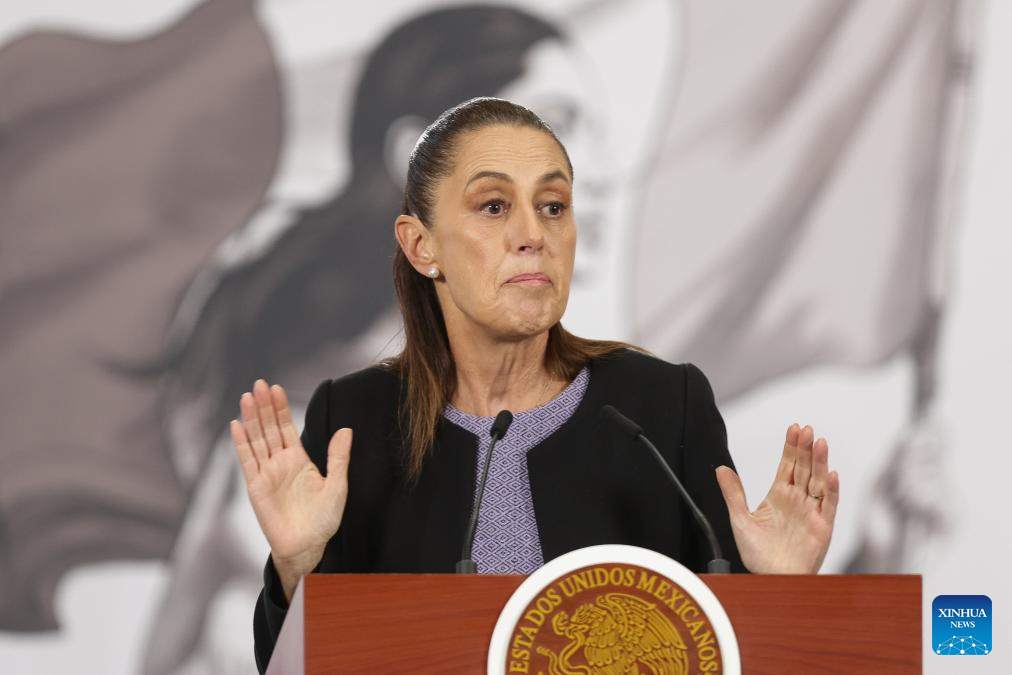 La presidenta mexicana, Claudia Sheinbaum, reacciona durante su conferencia de prensa matutina, en Palacio Nacional, en la Ciudad de México, capital de México, el 29 de enero de 2026. Sheinbaum dio a conocer el jueves que mantuvo una llamada telefónica con su par de Estados Unidos, Donald Trump, en la que abordaron temas comerciales y relevantes de la relación entre ambas naciones. (Xinhua/Francisco Cañedo)
