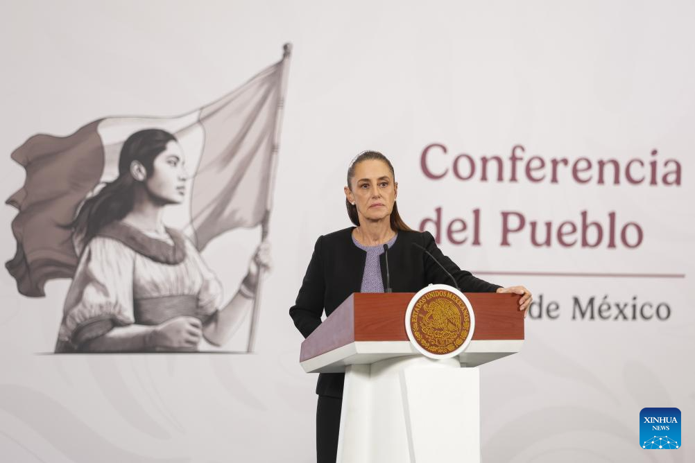 La presidenta mexicana, Claudia Sheinbaum, habla durante su conferencia de prensa matutina, en Palacio Nacional, en la Ciudad de México, capital de México, el 29 de enero de 2026. Sheinbaum dio a conocer el jueves que mantuvo una llamada telefónica con su par de Estados Unidos, Donald Trump, en la que abordaron temas comerciales y relevantes de la relación entre ambas naciones. (Xinhua/Francisco Cañedo)