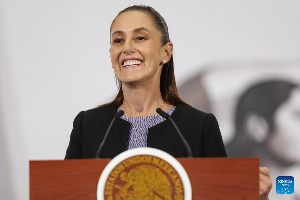 La presidenta mexicana, Claudia Sheinbaum, sonríe durante su conferencia de prensa matutina, en Palacio Nacional, en la Ciudad de México, capital de México, el 29 de enero de 2026. Sheinbaum dio a conocer el jueves que mantuvo una llamada telefónica con su par de Estados Unidos, Donald Trump, en la que abordaron temas comerciales y relevantes de la relación entre ambas naciones. (Xinhua/Francisco Cañedo)