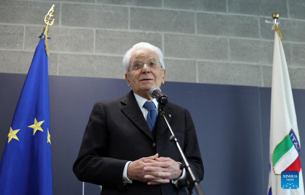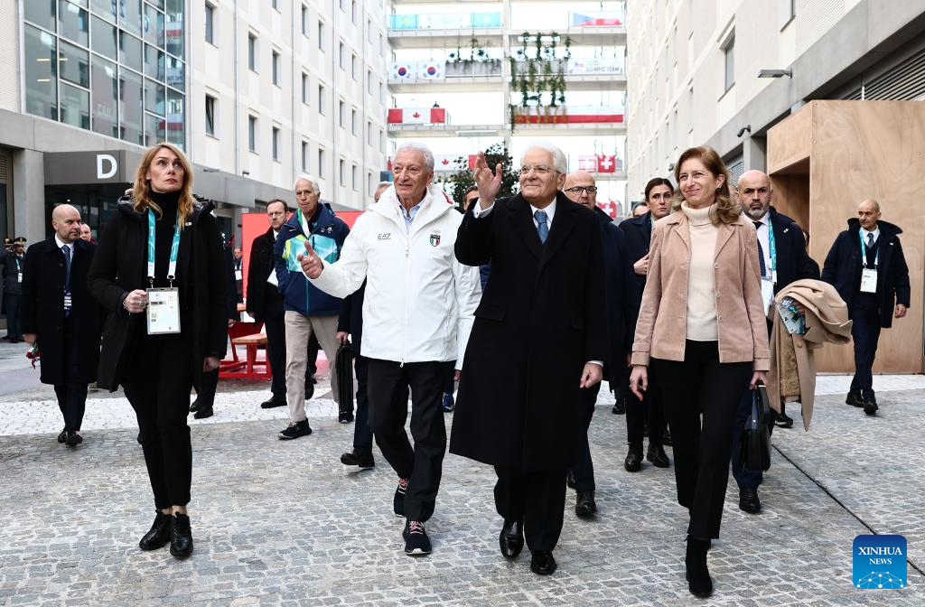 MILAN, 5 febrero, 2026 (Xinhua) -- El presidente italiano, Sergio Mattarella, pronuncia un discurso durante su visita a la Villa Olímpica previo a los Juegos Olímpicos de Invierno Milán-Cortina 2026, en Milán, Italia, el 5 de febrero de 2026. (Xinhua/Yara Nardi/Pool)