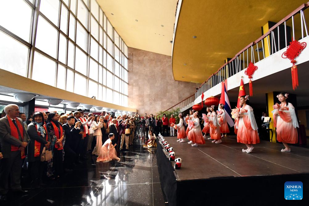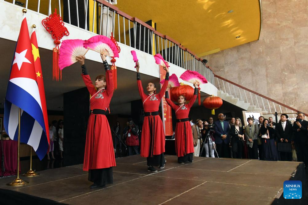LA HABANA, 5 feb (Xinhua) -- La llegada del Año Nuevo Chino en el calendario lunar, el próximo día 17 de febrero, fue celebrada por la embajada de China en Cuba con una recepción y la apertura de la exposición de pinturas "Al Galope: Visiones del Caballo de Fuego", de los artistas cubanos Juan Arel, Yosvany Martínez y José Miguel Pérez.