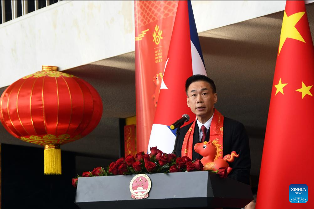 LA HABANA, 5 febrero, 2026 (Xinhua) -- Imagen del 4 de febrero de 2026 del embajador chino en Cuba, Hua Xin, pronunciado un discurso en una recepción para celebrar la llegada del Año Nuevo chino, en la Sala Avellaneda del Teatro Nacional, en La Habana, capital de Cuba. La llegada del Año Nuevo chino en el calendario lunar, el próximo día 17 de febrero, fue celebrada por la embajada de China en Cuba con una recepción y la apertura de la exposición de pinturas "Al Galope: Visiones del Caballo de Fuego", de los artistas cubanos Juan Arel, Yosvany Martínez y José Miguel Pérez. (Xinhua/Joaquín Hernández)