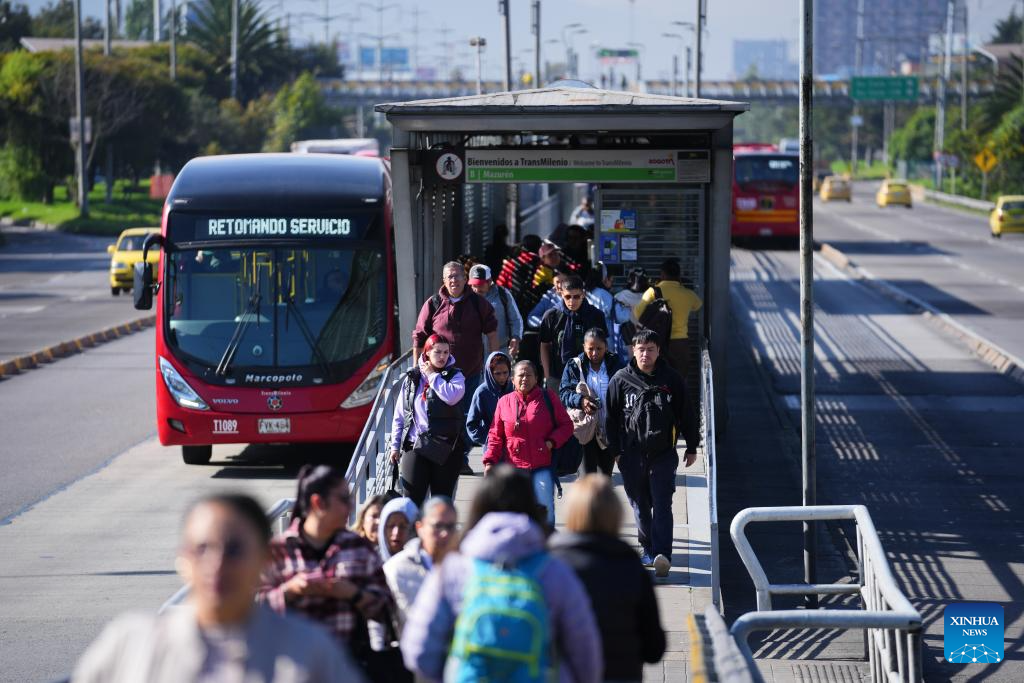 BOGOTA, 5 febrero, 2026 (Xinhua) -- Personas son vistas en una estación de transporte público durante el primer Día Sin Carro y Sin Moto del año, en Bogotá, capital de Colombia, el 5 de febrero de 2026. (Xinhua/Andrés Moreno)