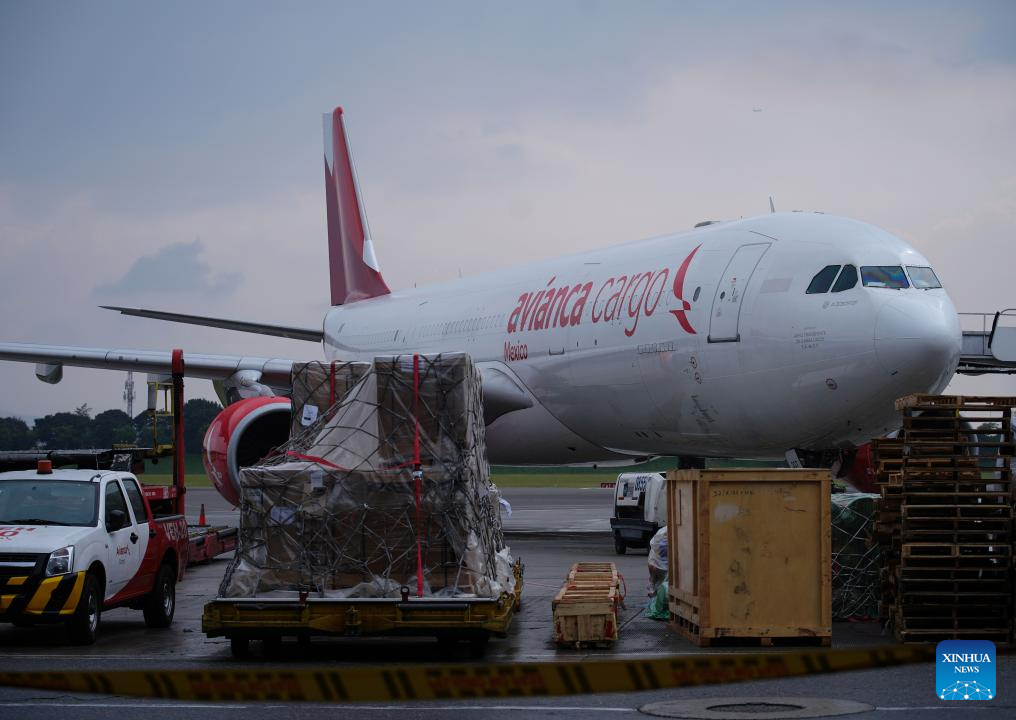 BOGOTA, 11 febrero, 2026 (Xinhua) -- Imagen del 10 de febrero de 2026 de un avión de carga visto frente a un hangar en la terminal de carga del Aeropuerto Internacional El Dorado, en Bogotá, capital de Colombia. El gremio floricultor de Colombia ha reportado como exitosas sus operaciones de exportación durante la temporada de San Valentín, a pesar del incremento de los aranceles para ese producto colombiano, ordenado por el Gobierno de Estados Unidos en abril del pasado año. (Xinhua/Andrés Moreno)