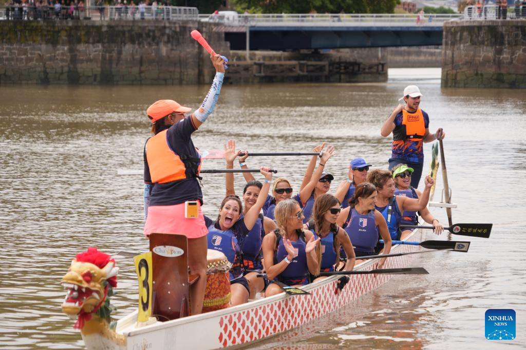 Imagen del 15 de febrero de 2026 de personas participando en una carrera de botes del dragón para celebrar el Año Nuevo chino, en Buenos Aires, Argentina.Los botes dragón concitaron el domingo la atención del público que se acercó a ver el espectáculo en el Dique 1 de Puerto Madero, Buenos Aires, la capital de Argentina. La actividad fue organizada por la Asociación de Botes Dragón, en el marco de los festejos previos al Año Nuevo chino que, desde este próximo martes 17 de febrero, estará regido por el Caballo en el calendario lunar. (Xinhua/Zhang Duo)