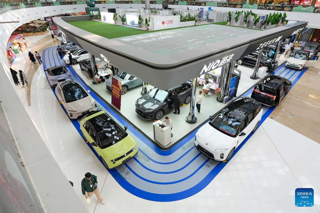 BEIJING, 16 febrero, 2026 (Xinhua) -- Imagen del 11 de febrero de 2026 de personas visitando un área de experiencia de vehículos de energía nueva (NEV, por sus siglas en inglés), en un centro comercial, en el distrito de Chaoyang de Beijing, capital de China. (Xinhua/Ju Huanzong)