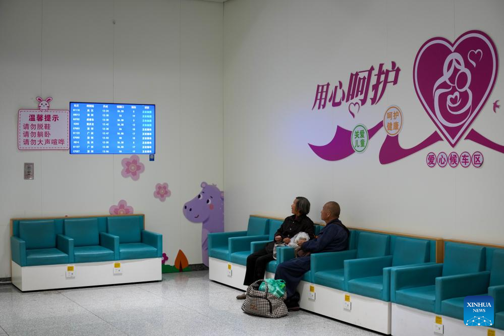 BEIJING, 19 febrero, 2026 (Xinhua) -- Pasajeros descansan en la sala de espera de cortesía de la Estación del Ferrocarril Baiyun de Guangzhou, en Guangzhou, en la provincia de Guangdong, en el sur de China, el 19 de febrero de 2026. Durante la temporada de viajes de la Fiesta de la Primavera, los departamentos de aviación civil, ferrocarriles y otros han aumentado la capacidad de transporte y optimizado servicios convenientes como el transporte intermodal aéreo-ferroviario, vagones silenciosos, entrega de equipaje y canales prioritarios para grupos vulnerables, implementando múltiples medidas para garantizar un viaje seguro y sin contratiempos para los pasajeros. (Xinhua/Wu Lu)