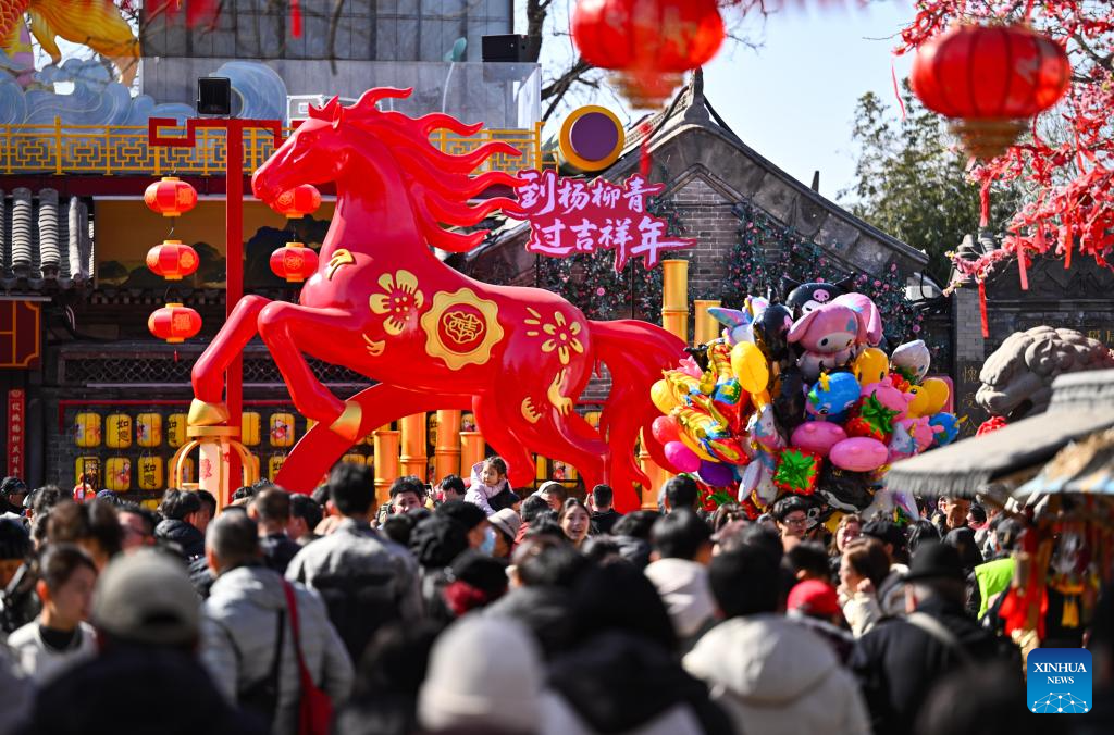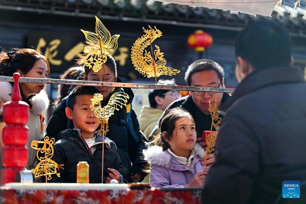 TIANJIN, 22 febrero, 2026 (Xinhua) -- Visitantes se divierten, en el poblado antiguo de Yangliuqing, en Tianjin, en el norte de China, el 22 de febrero de 2026. El poblado antiguo de Yangliuqing lanzó una serie de actividades que presentan costumbres populares, cultura tradicional y experiencias interactivas, ofreciendo a los visitantes una fiesta popular inmersiva durante estas vacaciones de la Fiesta de la Primavera. (Xinhua/Zhao Zishuo)