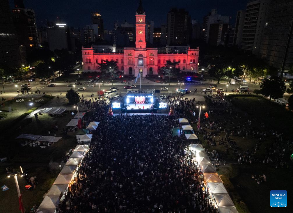 LA PLATA, 22 febrero, 2026 (Xinhua) -- Imagen tomada con un dron el 21 de febrero de 2026 de la Plaza Moreno, en la ciudad de La Plata, Argentina. La ciudad argentina de La Plata se sumó el sábado a los festejos por el Año Nuevo chino con un multitudinario y colorido festival frente a la emblemática catedral de la ciudad. (Xinhua/Ezequiel Putruele)