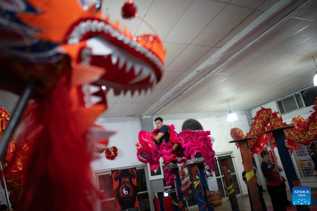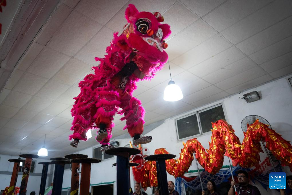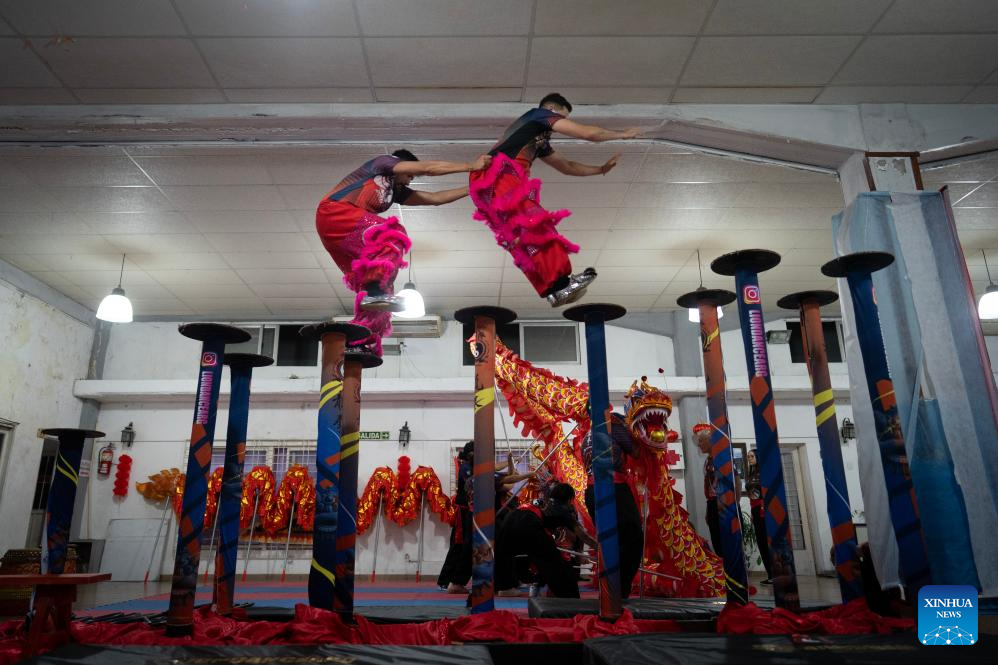 BUENOS AIRES, 22 feb (Xinhua) -- La tradicional danza del dragón y del león, que recientemente abrió los festejos por el Año Nuevo chino en la ciudad de Buenos Aires, marcó este año un nuevo hito en Argentina al incorporar por primera vez la modalidad sobre postes, una variante en altura que exige mayor destreza, coordinación y preparación física.